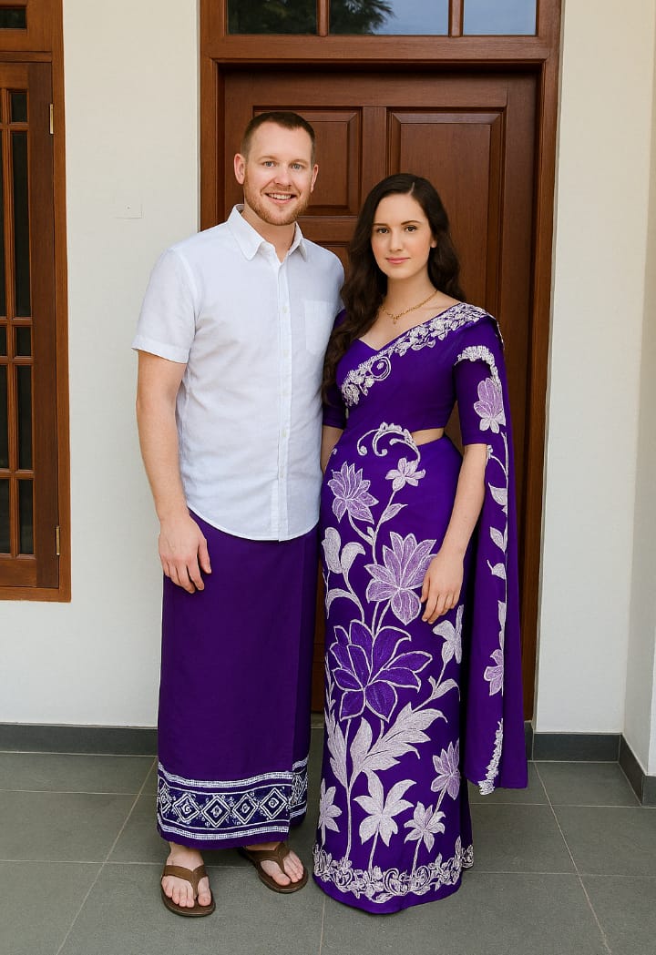 Women's Classic Sri Lankan Saree with Men's Sarong & Shirt